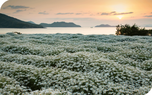 中でもマーガレットが満開になる5月の美しさは格別で、一面が真っ白い花に埋め尽くされる。