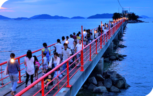 毎年8 月4・5 日両日の夏季大祭には海岸から島まで渡り橋がかかけられ